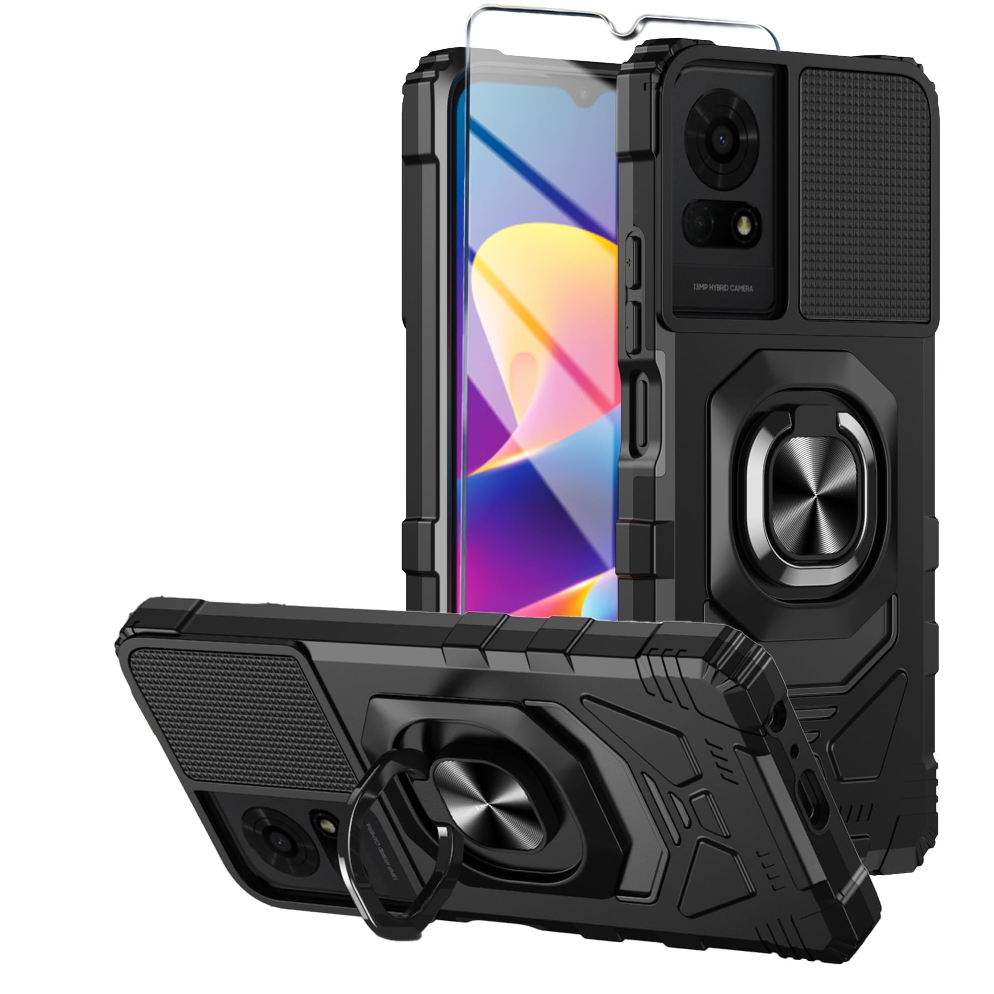 for Boost Celero 5G SC Phone Case (SC Version Only) with Tempered Glass Screen Protector,Military Grade Heavy Duty Shockproof Protective Cover,with Ring Kickstand (Purple)