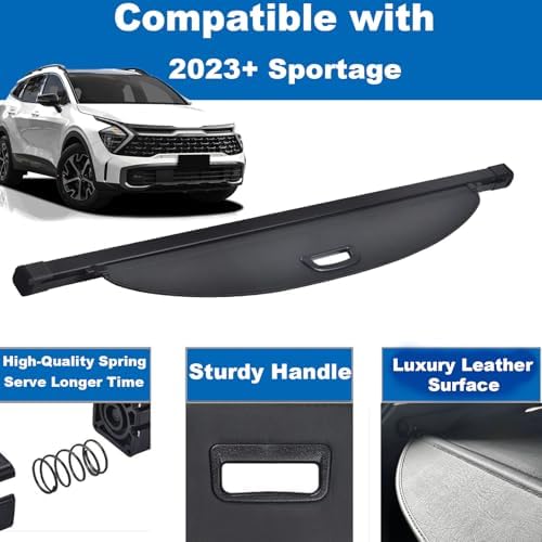 Cargo Cover for Kia Sportage 2023 2024 2025 2026 Accessories, Leather Retractable Trunk Cover for 2023 2024 2025 2026 Kia Sportage Accessories Privacy Security Screen Luggage Shield Shade