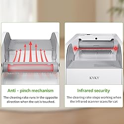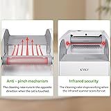 - This automatic litter box is the same as traditional litter box, and cats are more willing to enter (some cats will resist entering a closed litter box). Low entrance design is suitable for short-legged cats, kittens and cats with mobility problems, open space and the cat can turn around freely, which is suitable for big cats and multi-cat households. smart cat litter box is very easy to operate, disassembles in seconds for easy cleaning of the litter box, litter tray and removable rake and it has anti-pinch mechanism and infrared sensors to protect your cat's safety.