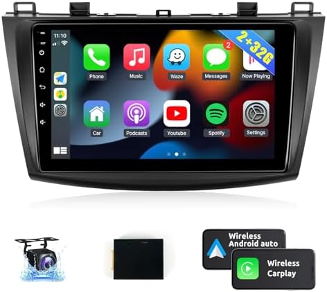 - 【Bluetooth Car Stereo with FM Radio】You can answer/make calls and be hands-free without distractions via bluetooth. This carplay for 2010 mazda 3 radio built-in clear mic and equipped with external mic jack in RCA cable. Bluetooth wireless audio stream allows you to enjoy a superior music listening experience! Stable FM radio with unlimited preset stations, great sound; For 2010 mazda 3 car stereo carplay support manual and automatic station search.