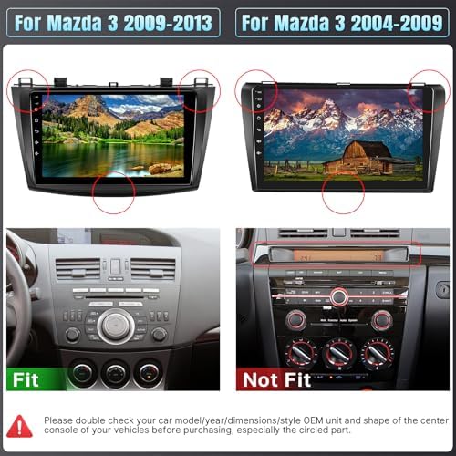 - 【For Mazda 3 Radio Upgrade】This double din radio is perfectly suitable for mazda 3 2009 2010 2011 2012 2013, and no need to purchase additional accessories. (Please double check your car model/year/dimensions/style OEM unit and shape of the center console of your vehicles before purchasing.) If your car has a premium sound J.B.L or B.O.S.E system or has a large Navi screen, our car radio for mazda 3 carplay don't support it.