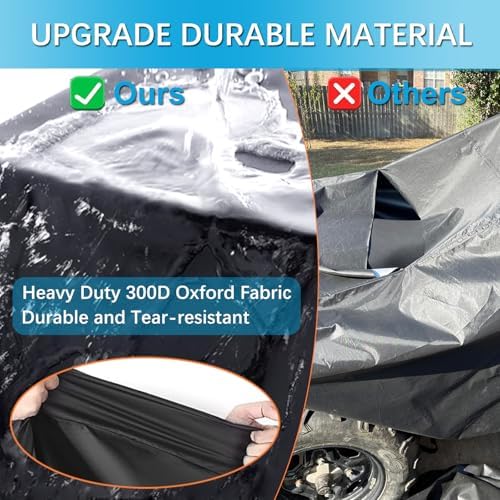 - 【Durable Material and Waterproof】 INEZARI ATV cover is made of heavy duty 300D oxford fabric with silver pu coating which is tear-resistant, wear-resistant, UV-resistant and more waterproof with 3000 Pa water pressure. Used double-sitched enhance its durability, not easily cracked, ensuring long-term protection for your quad bike.