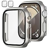 - JZK 2 Pack Case with Tempered Glass Screen Protector for Apple Watch Series 6/5/4/SE 44mm, Slim Guard Bumper Full Coverage Hard PC Protective Cover HD Ultra-Thin Cover for iWatch 44mm,Titanium