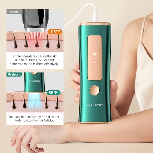 - Visible Results in Just 2-4 Weeks: Myelecsio hair removal device uses our latest IPL technology to reduce unwanted hair growth, and ensure safety, nearly painless. You will see the visible results in 2-4 weeks if you follow our suggested treatment regime. It destroys the hair melanin in the hair follicles to prevent hair regrowth.