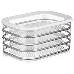 Package Content: you will receive 1 set of meat containers for refrigerator, each set includes 4 boxes, sufficient quantity to meet your decorative needs in your kitchen, to sort your meat in order, note: do not put them in a container with high temperature, such as the dishwasher, microwave oven, etc., not suitable for working at high temperature Suitable size: Our refrigerator cooked meat storage containers, when stacked in four pieces, measure approximately 9 x 3.3 x 7.7 inches. They are compact and lightweight, making them ideal for placement in refrigerator compartments. You can use them as needed to store and hold meat. Additionally, they can also serve as meal preparation boxes or breakfast preparation boxes, saving you time the next day Thick and Reusable: these cheese organizers for fridge are made of PET material, strong and safe, which can come into direct contact with food, reliable and thick, reusable and easy to clean, giving you a long term use and less cleaning labor Handy and Functional: you can use this bacon keeper for refrigerator to hold bread slices, sandwiches, leftovers, pies, fruits, salad, snacks and more, providing convenient and useful options for storing foods Stackable and Clean: there are 4 layers of boxes of our cookie storage containers, stackable and clean, not taking up much space on your counter, you can see what's inside from the top through the lid, neat and tidy, easy to distinguish and apply