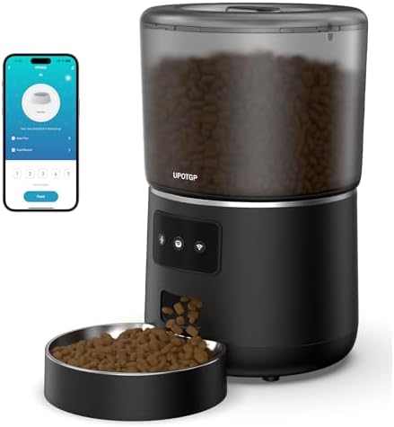 • Smart APP Control: UPOTGP cat feeder automatic with WiFi allowing you to set up 1-10 meals per day with 1-9 portions per meal. Managing your feeding schedule with ease using our smart APP, accessible anytime, anywhere on your iOS or Android smartphone. Please connect feeder with WiFi under power supply when first use.