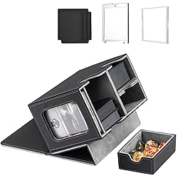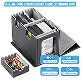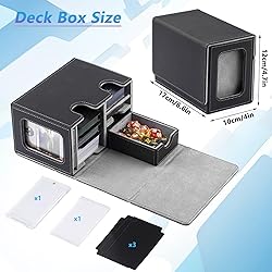 【MTG Commander Deck Box】Crafted with Commander players in mind, our innovative design is tailor-made for your Commander deck. You can securely store your commander or leader card in the included 35PT magnetic card holder and proudly display it in the specially designed external display window.This unique feature ensures that you can quickly identify which deck is inside each card box. 【Premium Quality Material】 Featuring a sturdy and durable PU leather shell for shock protection/dust/ moisture proof and a soft microfiber interior to safeguard cards from scratches.commander deck box has a very strong magnetic closure, even if you shake the box hard it won't open and trading cards won't fall out, ensuring safe storage. 【Larger Storage Capacity】The MTG deck box has two compartments, impressive capacity, and 400+ sleeveless trading game cards easily. Also suitable for holding 200+ double-sleeved cards or 300+ single-sleeved cards.It also includes a pull-out drawer for storing dice. Ideal for storing multiple decks at the same time, eliminating the need for multiple boxes and a separate dice box,ensuring that all your gaming essentials are neatly organised and within easy reach. 【Easy to Organize】This card storage box has a humanized design with double-layer partitions inside to ensure that the cards are sorted in an orderly manner and fully protected to avoid confusion and damage. The 3 included dividers will allow you to divide the cards into different areas, making it easy to sort and organize your card collection.The U-shaped wide mouth ensures easy card retrieval during gameplay, very convenience and practical. 【Better Collection Experience】Our card deck box comes with 3 card dividers and 2 one-touch card brick.Card deck box is suitable for storing all kinds of cards, MTG card, YuGiOh card, trading card, game card, baseball card, basketball card, singer card, etc., so that your card collection and storage more convenient.Whether you're an MTG, PTCG, or TCG enthusiast, it provides an unprecedented joy in card gaming.A great choice for anyone who plays trading card games.