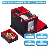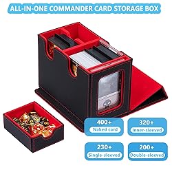 【MTG Commander Deck Box】Crafted with Commander players in mind, our innovative design is tailor-made for your Commander deck. You can securely store your commander or leader card in the included 35PT magnetic card holder and proudly display it in the specially designed external display window.This unique feature ensures that you can quickly identify which deck is inside each card box. 【Premium Quality Material】 Featuring a sturdy and durable PU leather shell for shock protection/dust/ moisture proof and a soft microfiber interior to safeguard cards from scratches.commander deck box has a very strong magnetic closure, even if you shake the box hard it won't open and trading cards won't fall out, ensuring safe storage. 【Larger Storage Capacity】The MTG deck box has two compartments, impressive capacity, and 400+ sleeveless trading game cards easily. Also suitable for holding 200+ double-sleeved cards or 300+ single-sleeved cards.It also includes a pull-out drawer for storing dice. Ideal for storing multiple decks at the same time, eliminating the need for multiple boxes and a separate dice box,ensuring that all your gaming essentials are neatly organised and within easy reach. 【Easy to Organize】This card storage box has a humanized design with double-layer partitions inside to ensure that the cards are sorted in an orderly manner and fully protected to avoid confusion and damage. The 3 included dividers will allow you to divide the cards into different areas, making it easy to sort and organize your card collection.The U-shaped wide mouth ensures easy card retrieval during gameplay, very convenience and practical. 【Better Collection Experience】Our card deck box comes with 3 card dividers and 2 one-touch card brick.Card deck box is suitable for storing all kinds of cards, MTG card, YuGiOh card, trading card, game card, baseball card, basketball card, singer card, etc., so that your card collection and storage more convenient.Whether you're an MTG, PTCG, or TCG enthusiast, it provides an unprecedented joy in card gaming.A great choice for anyone who plays trading card games.