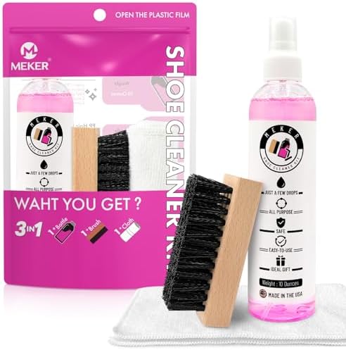 MEKER Shoe Cleaner Kit, 10-Ounce Shoe Cleaner with Bottle and Brush For Fabric Cleaner For Leather, Whites, Suede and Nubuck Sneakers