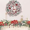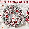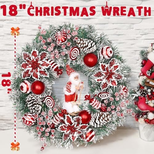 Christmas Wreaths for Front Door, 18" Christmas Wreath with Skiing Santa Claus, Red Poinsettias Christmas Wreath, Christmas Door Wreath for Indoor Outdoor Decoration