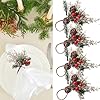 Generic Christmas Cedar Red Fruit Napkin Rings Natural Pine Needle Napkin Holder Table Decoration for Christmas New Year Party Xmas Pine Cone Berries Napkin Ring Holders 4 Pcs, Green