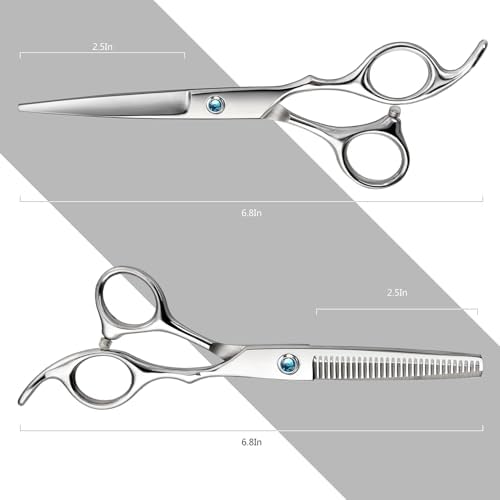 - 〖Professional Barber Scissors Set〗With a length of 7 inches, and safe smooth blade top design Fcysy hair scissors set is safe and easy to use on men, women and pet. Sharp blades for smooth and clean cuts without pulling or tugging hair. Suitable for professional hairstylists, barbers, as well as home hair cutting enthusiasts.