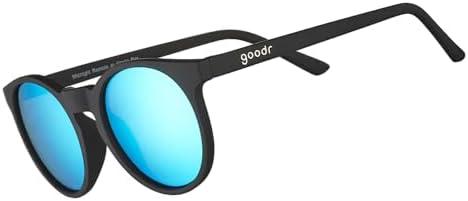 goodr Midnight Ramble at Circle Bar Polarized Round Sunglasses, Small Sized (Circle G), Black Solid Frame with Blue Mirrored Reflective Lenses, UV400 Protection, No Slip, No Bounce