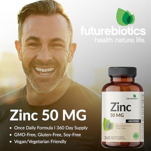 Futurebiotics Zinc 50 MG High Potency, 1 Year Supply - Non-GMO 360 Vegetarian Tablets