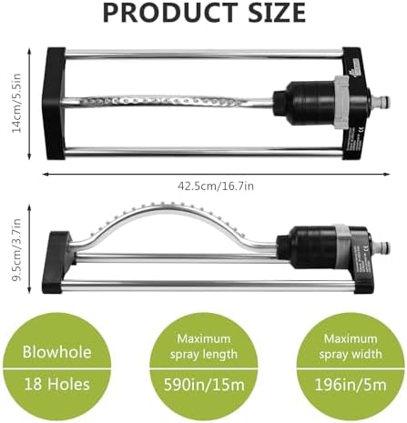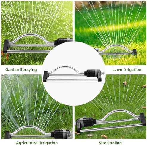 - - **Smooth & Quiet Operation**: Equipped with a turbine-driven motor, this metal oscillating sprinkler provides a quieter, smoother watering experience, maintaining its position even under high-pressure water conditions for uninterrupted irrigation.