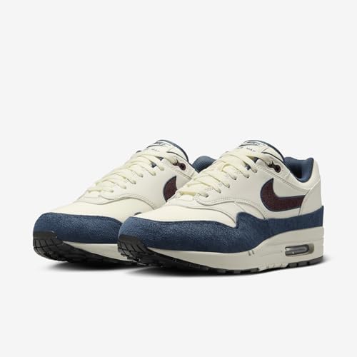 Nike Men's Air Max 1 Shoes Coconut Milk/Armory Navy/Light Orewood Brown/Burgundy Crush Size-10