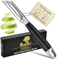 - Introducing the KULUNER Upgraded 304 Stainless Steel Multi-Function Kitchen Peeler, an essential tool for any kitchen enthusiast. This peeler is designed to effortlessly peel vegetables and fruits, making food preparation quick and easy. Crafted with high-quality 304 stainless steel, the KULUNER Peeler is not only sharp and durable but also corrosion-resistant, ensuring that it will stand the test of time. The peeler's sharp blade glides through even the toughest skin with ease, leaving behind a smooth and ready-to-eat surface. The solid wood handle provides a comfortable and secure grip, even when your hands are wet or when peeling for an extended period. The handle's elegant design adds a touch of natural beauty to your kitchen utensils collection. With its multi-function design, the KULUNER Peeler is versatile enough to handle a variety of tasks. Whether you're peeling potatoes, carrots, apples, or any other fruit or vegetable, this peeler is up to the challenge. Its sharp and durable blade makes quick work of any peeling task, saving you time and effort in the kitchen. The KULUNER Upgraded 304 Stainless Steel Multi-Function Kitchen Peeler is not just a tool; it's an investment in your kitchen. Its premium materials and thoughtful design make it a durable and reliable addition to your kitchenware. Say goodbye to the hassle of peeling with inefficient tools and embrace the convenience and efficiency of the KULUNER Peeler. Your kitchen simply wouldn't be complete without it.