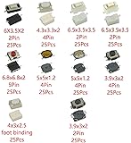 Micro Tactile Momentary push button switch Kit:Compatible with for TV Audio Equipment Video Recorders Cameras Computers Game and Others Household Appliances Rated load:DC 12V 50mA Voltage resistance:AC 250V(50Hz) /min The contact resistance:50 mΩ MAX;The insulation resistance:100 mΩ MIN Operating Temperature: -50℃~80℃;Working life: >100000 Times Commodities Include:250Pcs 10 Value Micro Tactile Push Button Switch(25 Types of Buttons Each)Button Size:25 Pcs 3*4*2.5 (Foot Wrapping); 25 Pcs 3*4*2.5; 25 Pcs 3*6*4.3; 25 Pcs 3*6*5; 25 Pcs 3*4*2 (2P); 25 Pcs 3*4*2 (4P); 25 Pcs 4*4*1.5; 25 Pcs 4*4*0.8; 25 Pcs 3*6*2.5; 25 Pcs 6*6*3.1