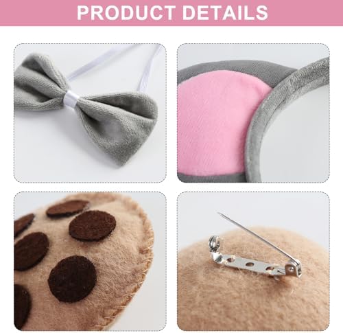 Mouse Costume Set and 2PC Cookie Brooches Mouse Ears Headband Bow Tie Tail Halloween Party Dress up Accessories