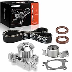 [Vehicle Fitment]: Compatible with Mitsubishi Lancer 2003-2006 L4 2.0L (Naturally Aspirated), Lancer 2002 L4 2.0L, Lancer 2007 L4 2.0L --- It comes with Water Pump [Kit Parts Included:]: ①1x Timing Belt; ②1x Water Pump; ③1x Timing Belt Tensioner; ④1x Camshaft Front Seal; ⑤1x Crankshaft Front Seal [Special Note]: Please enter your vehicle information in the top left corner of the listing and check our Special Notes before ordering. [Functions]: A-Premium timing (or cam) belt kit with water pump usually locates at the front of the engine and wraps around a set of sprockets. It ensures the connection between the camshaft and crankshaft, making the pistons and valves work together in the correct sequence. It will help the engine run normally, improve fuel efficiency, and thus effectively optimise the engine's performance. [Buy with Confidence]: A-Premium offers a one-year unlimited-mileage guarantee on our meticulously crafted engine timing belt kit. We offer a wide variety of automotive accessory categories, ensuring that you can hit the road with peace of mind.