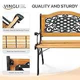 VINGLI Classic Cast Iron & Teak Arched Back Rectangular Outdoor Bench, 3-Seater, 470 lbs Capacity, Easy Assembly, Weather Resistant, 49.5" W x 20.5" D x 29" H
