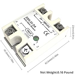 - MAKERELE's SSR-25DA DC Single Phase Semi-Conductor Solid State Relay Module offers DC control AC with 3-32V DC in & 24-380V AC out, 62.6x45.3x23mm, 0.16 lb. Efficient heat dissipation suits temp-critical apps like industrial automation & HVAC. Semiconductor devices ensure silent, durable operation, no mechanical wear, arc, or noise