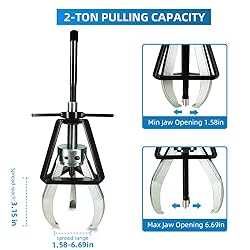 - BESTOOL 3 Jaw Puller ensures equal load distribution, secure hold, and concentric pulling action. Manual puller with three jaws for extraction of most shaft-fitted parts, including bearings, wheels, bushings, gears, and pulleys. Made of steel for increased strength, provides maximum strength and longevity to the gear puller. The longest distance from the screw tip to the claw hook: 3.15 inch. Spread Range: 1.58 to 6.69 INCHES . Pull Capacity: 2 Ton.