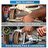 Application : 3 jaw gear puller is suitable for extracting shaft-fitted parts, including bearings, wheels, bushings, gears, and pulleys. Design : Three-jaw design balances the pulling force well, and claws are precisely machined to give a non-slip and secure grip on the gears. Make it deal for pulling work in confined areas. Material : This 3-jaw removal tool is made of steel for increased strength, provides maximum strength and longevity to the gear puller. Feature : Manual Puller structure has the same load distribution, which can be securely clamped and concentrically pulled. The three-jaw gear puller evenly distributes the tension and protects the gear. Slim tie rods, steel center bolts, and apex threads Can easily grasp and enter narrow spaces. Specifications : The longest distance from the screw tip to the claw hook: 3.15 inch . Spread Range: 1.58 to 6.69 INCHES . Pull Capacity: 2 Ton.