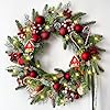 Christmas Wreath Decorations - 20" Christmas Wreaths for Front Door with Candy Canes Christmas Ball Ornaments, Lifelike Pine Cones Berries & Bow, Christmas Door Wreath for Indoor Outdoor Wall Decor