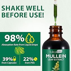 Natural Lung: Mullein leaf is known for its soothing properties and traditional use in supporting respiratory health and overall wellness. Use mullein extract for Lung health with confidence to make your breathing more usual and nourish your lungs. Auxiliary Stability: Our Powerful Lung Support & Respiratory allow you to embrace health, assist in body stabilisation. This Lung Health Essence maintain the respiratory tract, promote airway patency, and reduce mucus production. Experience easier and unobstructed breathing freedom. Faster Absortion: Compared to capsules, our formula is absorbed by the body faster, potentially absorbing all the benefits of Marlene leaf extract more quickly. Experience the soothing support brought by clear, enhanced, and comfortable breathing. Natural Ingredients: Use Mullen Leaf Extract to improve your health, a mixed nutrient that helps the lungs and supports your body's natural defenses. Now, you can enjoy the confidence of having clear, deep, and free breathing lungs every day. How to Use: This liquid form of mullein extract for lungs organic ensures that our lung mullein drops for smokers are easy to use. Simply add two full droppers to 8oz water or under tongue for faster absorption. Limit to two doses daily.