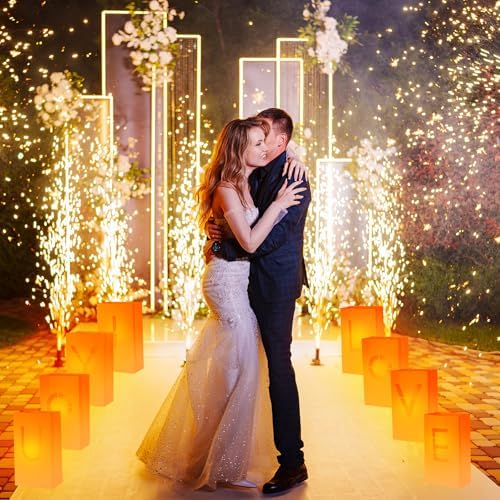 MECCANIXITY White Paper Luminary Bags, I Love You Sign Flame Resistant Candles Bags for Romantic Wedding Proposals, Anniversary Celebrations