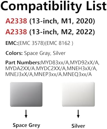- Compatible Models: Only for Macbook Pro Retina 13-inch A2338, You can do this by flipping your laptop over and finding a tab at the bottom that contains device information. If you are unable to confirm the model of your machine when placing an order, you can send us a message to inquire