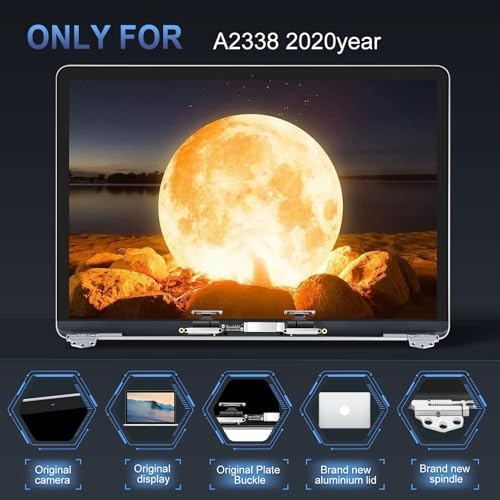 YUSE A2338 Screen Replacement 13.3" for MacBook Pro 2020 M1 2022 M2 Retina EMC 3578 EMC 8162 MYD83 MYD92 MYDA2 MYDC2 MNEQ3 MNEP3 MNEJ3 A Full LED LCD Display Assembly 2560x1600 (Silver)