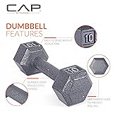 - Discover the versatility and effectiveness of the CAP Original Hex Cast Iron Dumbbells, meticulously designed to target every major muscle group with precision. Crafted from ASTM A48 Class 20 grey iron, these durable dumbbell heads are securely joined by a 1018 cold rolled solid steel handle, ensuring robustness and longevity. Ideal for building muscle, enhancing core strength, and promoting overall balance, these dumbbells offer a comprehensive fitness solution. Their hexagonal heads prevent rolling, providing stability during storage and facilitating seamless transitions between exercises. The medium depth knurling on the handle guarantees a secure grip, enhancing comfort and safety throughout your workout regimen. Finished with a resilient industrial enamel coating, these dumbbells not only resist wear and tear but also maintain their aesthetic appeal over time. Experience the benefits of incorporating dumbbell exercises into your routine, from increased bone health and calorie burning to elevated energy levels and improved mood. Elevate your fitness journey with the CAP Original Hex Cast Iron Dumbbells, a testament to quality craftsmanship and functional design.