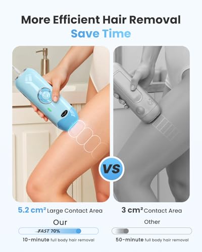 Laser Hair Removal for Women and Men - 5.2 cm² Contact Nearly Painless, Powerful Long-Lasting IPL Hair Removal at-home, Effective in 14 Days with Ultra-fast Light Emission for Whole Body Use