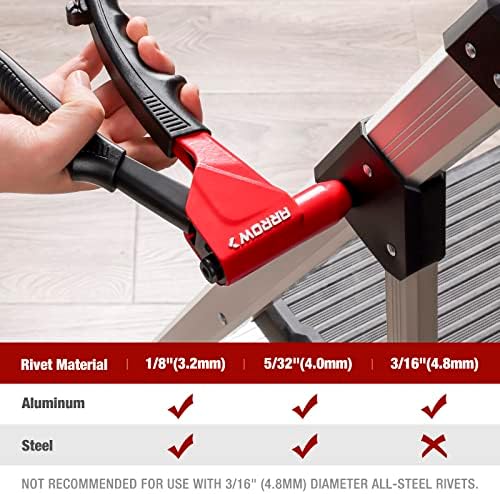 - Ergonomic Design: The compact one-handed operation of the Arrow pop rivet gun allows for easy squeezing and freedom to hold materials while fastening. The ergonomic PVC coating handle design allows to make work easier and saves more than 20% effort