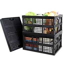 Suitable Size: The size of the collapsible crate is 17.32" x 13.77" x 9.08" with a capacity of 34 liters. Suitable for daily home storage or car trunk Sturdy and Durable: The collapsible storage crate is made of sturdy and durable plastic material that can withstand a lot of weight without easily deforming Easy to Assemble: When in use, lift the handle, flip the sides down and snap into the grooves to create a storage crate with a 34L capacity. Fold and flip both sides when not in use Stackable Design: The stackable plastic storage crates can be stacked either open or folded to save space. The stacking is more solid and difficult to slide off thanks to the non-slip bottom design Wide Application: The plastic crate is ideal for indoor storage or outdoor transportation, when moving home, camping, bathroom supplies, cleaning supplies, the trunk of the car, etc. It can also be used as a fruit and vegetable storage box