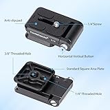 📷Versatile Compatibility: This L shaped quick release plate features a standard 1/4" screw, which makes it compatible with most DSLR cameras for a perfect connection. it is also compatible with all ball heads using Arca-Swiss quick release plates. 📷Convenient Foldable Design: Easily switch between vertical and horizontal use modes with the foldable design, providing quick and efficient adjustments on the go. 📷Enhanced Protection: The soft rubber pad on the top of the plate helps prevent scratches on your camera, ensuring its longevity and maintaining its pristine condition. 📷Easy Tripod Mounting: With 1/4" and 3/8" screw holes at the bottom, this camera L mount can be easily attached to a tripod to achieve stable and safe using experiences. 📷Durable Construction: Made with high quality aluminum alloy material, this quick release plate is built to last and offers reliable support for your camera during various shooting scenarios.