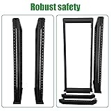 - GLOBALRACK 27U Open Frame Server Rack, Solid, Versatile, and Premium Quality Made; Each server rack is equipped with 2 pairs of L-shaped mounting brackets(Support track) to secure your equipment,The bottom wheel extends outward to protect against tipping of the frame caused by uneven equipment weight, Ensuring your equipment is 100% safe. This high-quality four-post server rack is suitable for all standard 19-inch equipment. 27U server rack 56"H x 21.75"W Installation depth 29.75-27.75in,a great feature that will fit most of the server installation on the market. This date rack is made of Cold Rolled Steel to provide you with a maximum load of 1250LB, The thickness of the column steel plate reaches 2MM (0.08 inch). Available in variety heights and depth, Screws and cage nuts are included,Includes the necessary assembly tools.