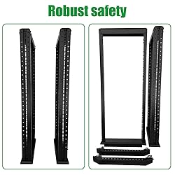 Specifications:GLOBALRACK 4-post open frame server rack ,Network rack that complies with all 19-inch standard equipment.Installation depth 29.75-27.75in,Equipped with brake wheels,Compatible with various servers, switches, data, AV, other IT equipment. COLD ROLLED STEEL RACK:Free Standing Rack, Very stable,Each server rack is equipped with 3 pairs of L-shaped mounting brackets(Support track) to secure your equipment,The bottom wheel extends outward to protect against tipping of the frame caused by uneven equipment weight, Ensuring your equipment is 100% safe. Premium quality craftsmanship, With supporting heave duty over 1250LBS Capacity, The thickness of the column steel plate reaches 2MM (0.08 inch).The battery module can be fully supported. EASY ASSEMBLY:Network rack with easy-to-follow assembly instructions and online video; Compact flat-pack shipping to avoid damage and facilitate installation. ASSEMBLED SIZE: 27U server rack/Date rack 35"H x 21.75"W + Bottom wheel length 37.7".Provides a variety of size options 15U server rack 20U server rack 27U server rack 42U srever rack. WARRANTY AND HARDWARE:This 27U data rack, 4 post network rack is backed for 3-years, Global Rack are built to industry high standards.Serve with square screw holes, Also M6 screws and cage nuts are included and required assembly tools.
