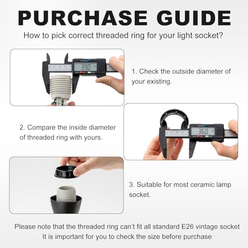 - 【Common Size】1-1/2 inches(39MM) inside diameter,2 inches(50MM) outside diameter. Suitable for most ceramic lamp socket. Note: Reminder check diameter of existing threaded socket before buying.