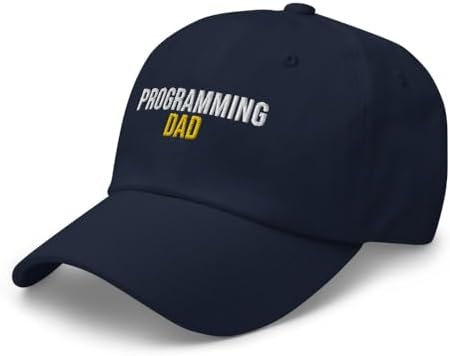 Programming Dad Hat (Embroidered Dad Cap) Programming Apparel. Dad hats aren't just for dads. This one's got a low profile with an adjustable strap and curved visor. 100% chino cotton twill. Unstructured, 6-panel, low-profile 6 embroidered eyelets 3 ⅛” (7.6 cm) crown. Adjustable strap with antique buckle. Head circumference: 20 ½″–21 ⅝″ (50.8 cm–53.3 cm). This product is made especially for you as soon as you place an order, which is why it takes us a bit longer to deliver it to you. Making products on demand instead of in bulk helps reduce overproduction, so thank you for making thoughtful purchasing decisions!