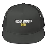 - Programming Dad Hat (Embroidered 5-Panel Trucker Cap) Programming Apparel. Classic trucker cap style with a cool fabric blend. 47% cotton, 28% nylon, 25% polyester. Structured, five-panel, high profile. Flat bill. Snapback closure. Head circumference: 21⅝″–23⅝″ (53.3 cm–58.4 cm).