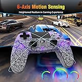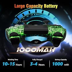 【Adjustable Light Modes】The controller for PlayStation 4 is equipped with 5 adjustable light modes: breathing light, randomized light flashing, gradient color, single color constant light, and turn off lights. You can customize the light modes based on your preferences, which enhances the gaming experience during nighttime use. 【1000 mAh Battery】This controller for PS4 features a 1000 mAh rechargeable battery, providing 8-12 hours of gaming time. It takes just 2 hours for a full charge using a USB charging cable or a charging station. The ergonomic design ensures a better fit for your hands, minimizing fatigue even during extended gaming sessions. (USB charging cable included) 【Closer to the Game】The 6-axis motion sensor ensures that tilting or rotating the gaming controller will be accurately translated into corresponding in-game actions. Additionally, built-in double motors provide varying intensities of vibration feedback based on different in-game collisions. With these features, you can further immerse yourself in the gaming world and enhance your overall relaxation. 【More Functions】The Share button allows you to share exciting gaming moments without pausing your game. Furthermore, the multi-touch touchpad on the face of the game controller provides you with more ways to play the game. Additionally, you don't need to worry about disturbing others because the PC controller offers two ways to enjoy high-quality sound: through a built-in speaker or a 3.5mm headset jack. 【Our Service】The wireless controller is fully compatible with PS4/PS4 Pro/PS4 Slim/PC/IOS/Android. Up to 33 feet of wireless connection will be established after initial pairing. If you have any questions or encounter any issues, please don't hesitate to contact us. We are committed to providing you with the best service possible!