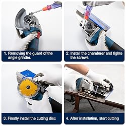 QUALITY MATERIALS: The angle grinder stand is made of stainless steel with excellent resistance to corrosion and deformation, which ensures long-term stability during operation and guarantees precise, even cuts. The angle grinder stand has a water pipe connector, which can be used to connect the water pipe to achieve cooling effect, and at the same time prevent excessive dust to protect the environment. Convenient adjustment: The stand has a convenient and quick adjustment function, which can easily cope with different sizes and thicknesses of tiles and realize precise cutting. Angle Accuracy: The Angle Grinder Holder can be used to accurately chamfer tiles, stone and other materials at a consistent 45 degree angle. Fits up to 100 angle grinders with grinding heads up to 45 mm, ensuring safe and accurate installation and use. The water pipe connection size of the angle grinder stand is 8mm outer diameter and 6mm inner diameter, if you need to use the water pipe, pay attention to ⚠️ to choose the correct water pipe when you purchase (our angle grinder stand does not come with water pipe)! Safe and Stable Clamping System: Equipped with a reliable safety clamping system that holds the angle grinder firmly in place, providing a stable operating environment and reducing vibration. Anti-slip pad on the bottom: The PP anti-slip panel on the bottom of the tile angle grinder stand prevents it from sliding due to external interference during operation, and the soft material prevents scratches on the tiles.