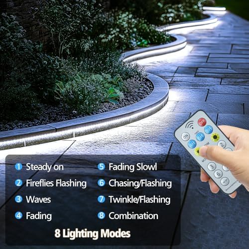 Solar Strip Lights Outdoor, 33Ft 640 LED Strip Light Cool White with Remote Timer Dimmable Outside Rope Lights Waterproof for Garden Yard Party Decor (No Adhesive)