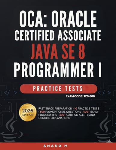 OCA: ORACLE CERTIFIED ASSOCIATE JAVA SE 8 PROGRAMMER I - PRACTICE TESTS, EXAM CODE : 1Z0-808, FAST TRACK PREPARATION, 10 PRACTICE TESTS, 500 QUESTIONS, 490+ EXAM TIPS, 495+ CAUTION ALERTS