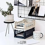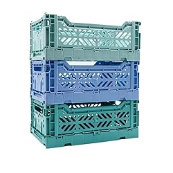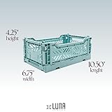 - Luna Crates will help you get organized in style. Made of recyclable plastic, this 3-pack of folding baskets is kind to the environment while also being durable and versatile. Each crate measures 5.75" H x 11.80" W x 15.75" D, allowing you to neatly store toys, books, blankets and more throughout your living space. When not in use, the crates fold down flat to take up minimal space. Use them under the coffee table to corral remotes and magazines, in the bedroom to hold folded clothes or blankets, or in the kitchen as a recyclables bin. Colors adds a pop of personality wherever you place them. Say goodbye to clutter and hello to a tidy home with this set of practical yet playful plastic storage crates.