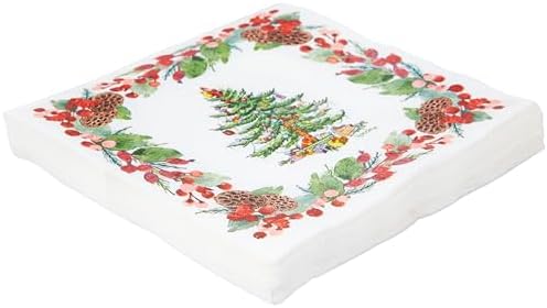 From family get togethers and Christmas day celebrations to holiday office parties, our Spode paper tableware Christmas collection is a wonderful way to add a festive touch to your table settings! This cocktail napkin pack features a beautiful Spode pinecone motif with iconic Christmas tree imagery, and are made with an absorbent 3-ply design to make clean up simple and easy. Coordinates with our other paper plates and napkins to create a complete look for your holiday celebrations. Paper Christmas napkin set comes with (20) paper cocktail napkins. Each napkin measures 5" x 5" when folded.