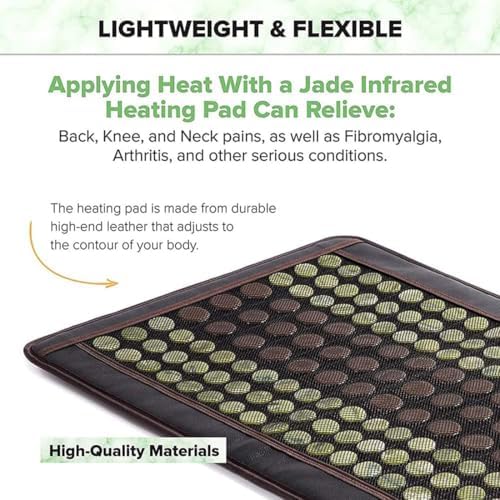 ★ Features:--For centuries, the Chinese have used jade as a pillow. The first jade pillow blocks were made of carved Now you can use Enjoy the benefits of sleeping with the comfort of the jade mat.--Far Infrared Therapy It is a form of absorbable invisible light that penetrates the human body up to 6 inches deep into the tissues.--Easy to Roll-up. Most people experience relief after just one 30-minute session.★ Specifications:--Product type: Massage and relaxation--Material: Ceramic, photon and PVC--Stone: germanite--Type: heat therapy--Adjustable temperature: 10 ~ 70 ° C--Dimensions: 60*40cm/53*79cm/53*97cm--Massage area: full body★ Package Contents:--1 x Infrared heating pad--1x Smart controller★ Note:--Welcome to our shop ! If you have any specific product queries, please contact ours.--Due to light and personal differences in color understanding, there will be small color differences in kind.--Due to different measurement methods, the error is generally 1-3 cm and the error range is not within the quality range.